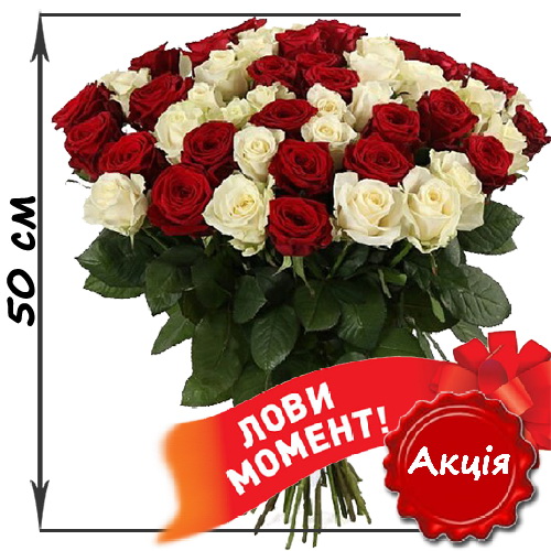 51 троянда мікс червона і біла (50 см)